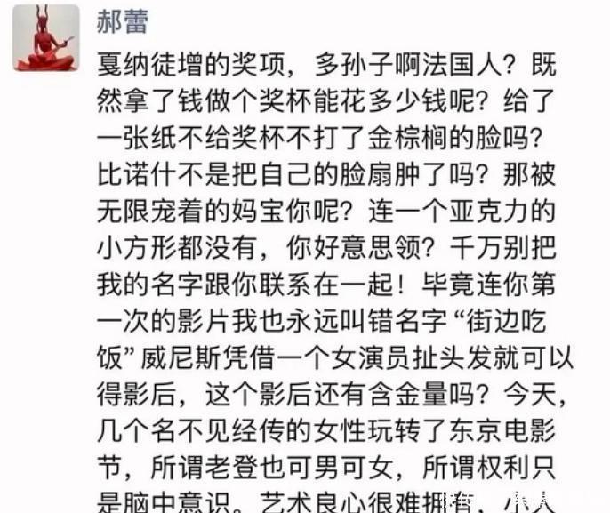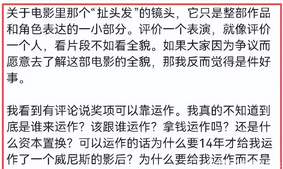 回看郝蕾的小作文,文中的那句“凭一个女演员扯头发就可以的影后,这个影后还有含金量吗?”,到底是在说谁?