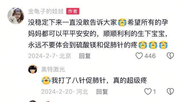 去世诞下一胎的时候,娃娃就差点出现问题,也是同样的节奏,她曾在去年2月7号分享视频透露,因为太劳累出现先兆早产,无奈之下只能住院打促肺针保胎,当时因为情况还没稳定,所以没有告诉粉丝,并希望所有的孕妈都能够平平安安,永远不要体会硫酸镁和促肺针的疼。